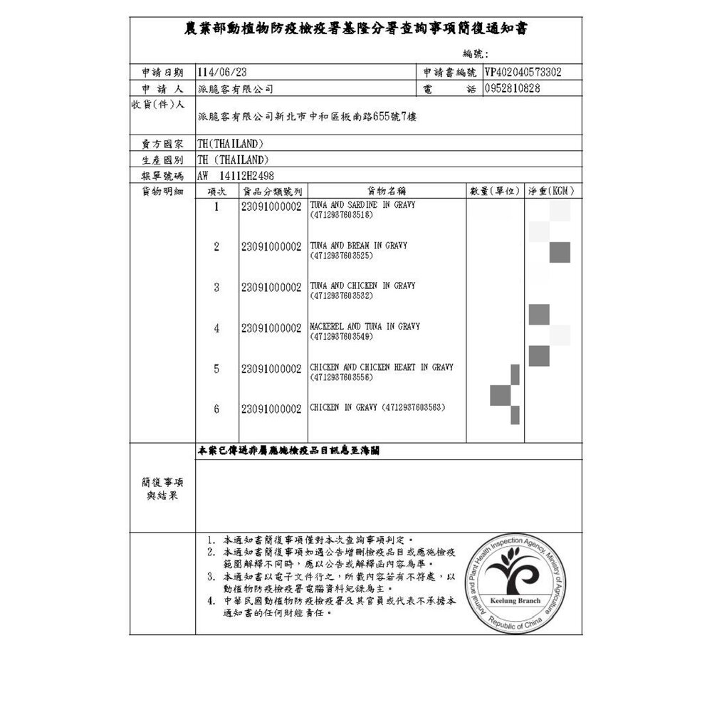 (二) 境外商品不得隨貨贈送應施檢疫物。