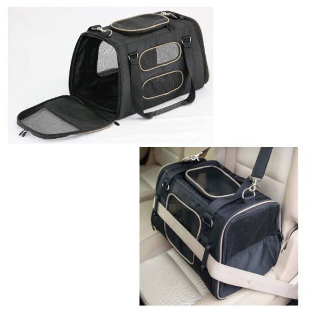寵物通勤包 黑色 可牢固固定在車位上 舒適內墊可拆洗