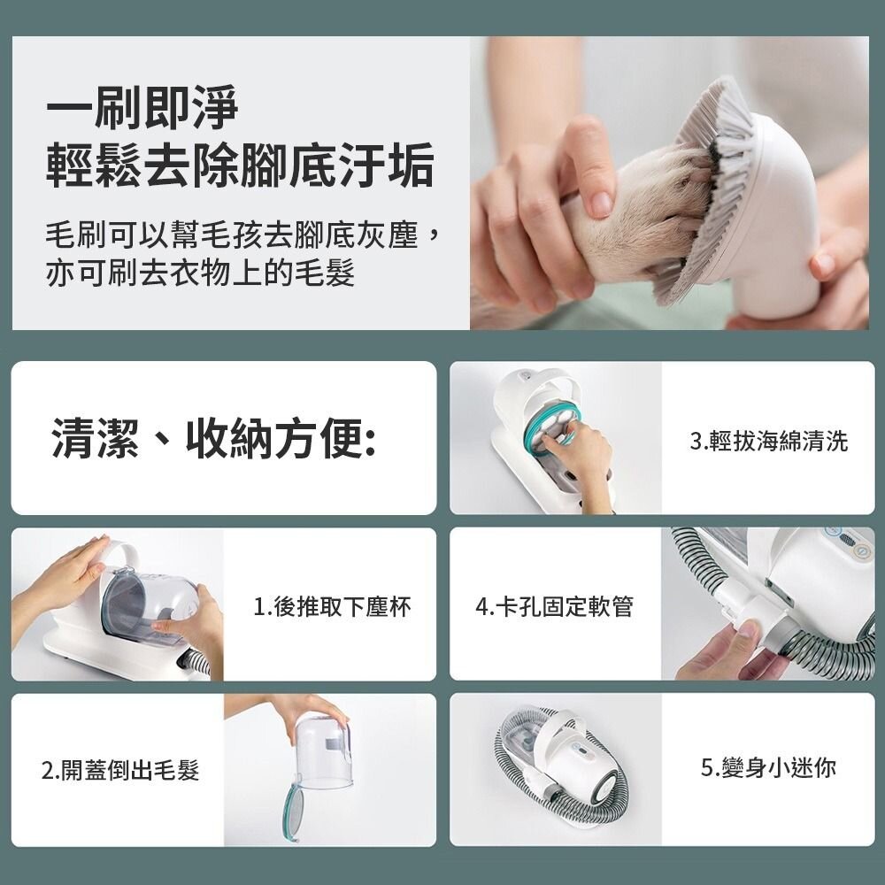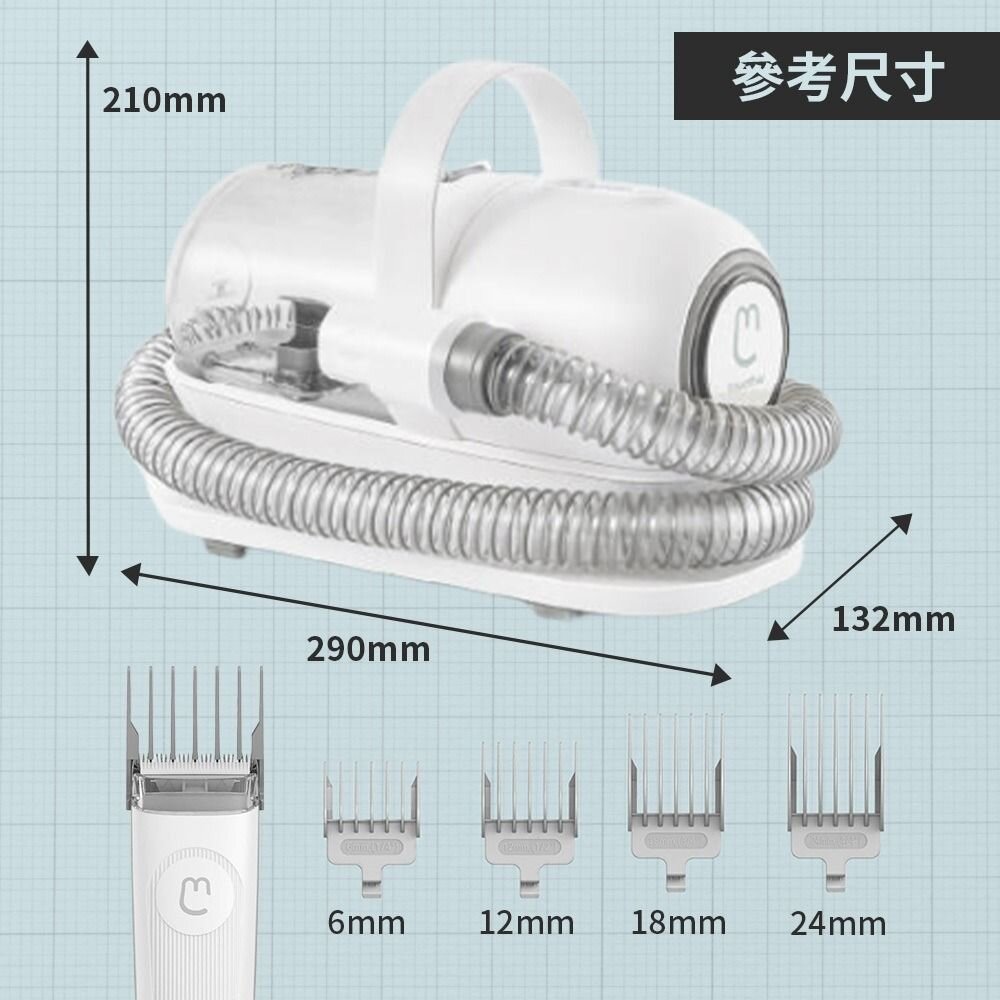 ✨多功能5合1寵物梳毛/理毛/吸塵機 ✨邊梳邊吸,廢毛不亂飛 ✨低噪馬達毛孩不害怕,多風道設計 ✨長毛短毛都能輕鬆修剪, 附四種卡尺配件頭 ✨打薄厚毛,夏日清涼消暑 ✨1L大集塵杯 產品規格 品名:毛媽媽美寵器2.0 材質:ABS 塵盒容量:1000ml 產品吸力:≥95W 操作半徑:4M 產品尺寸:290*132*210mm 額定功率:300W 淨重:2kg 套件:電剪、潔毛梳、打薄梳、毛梳、扁吸