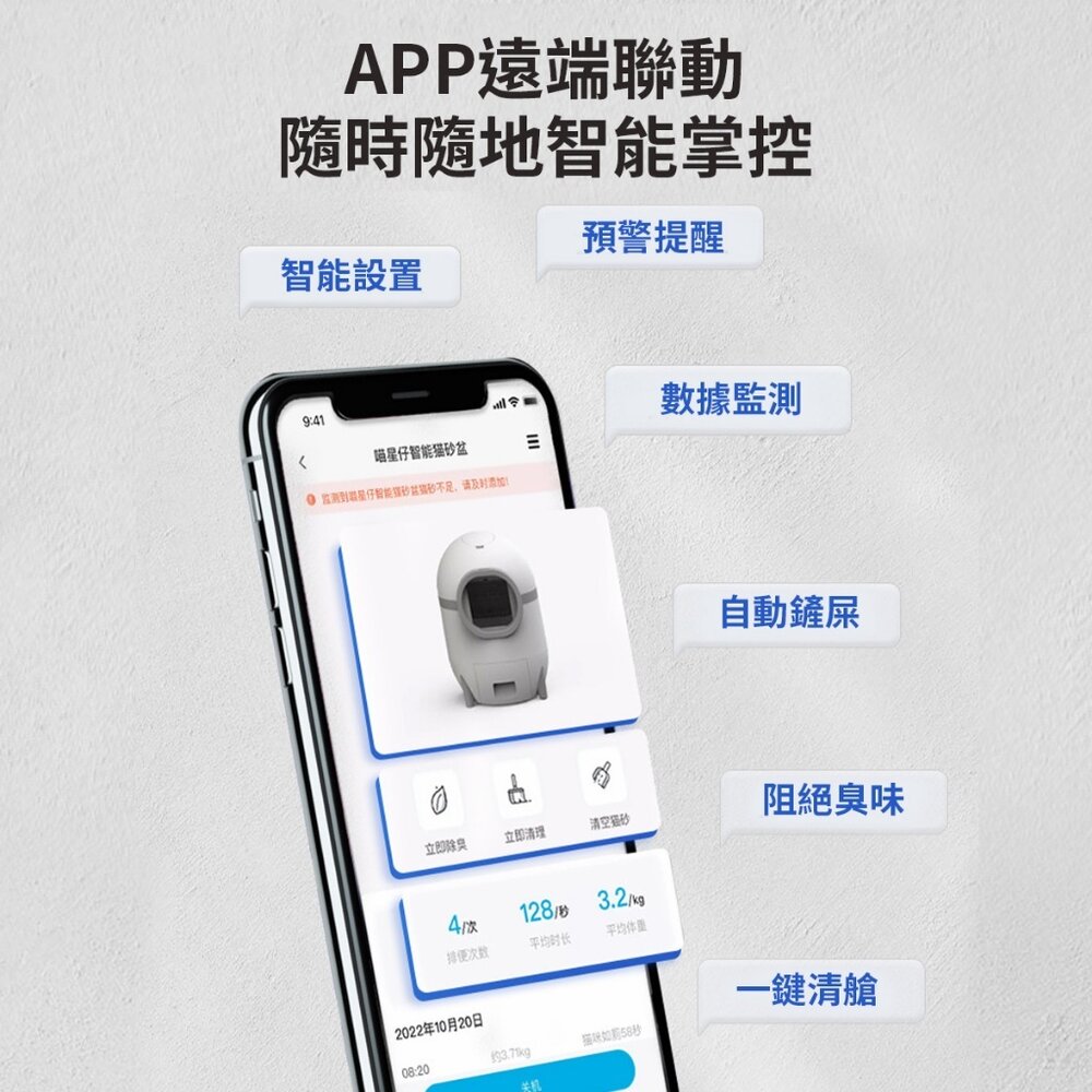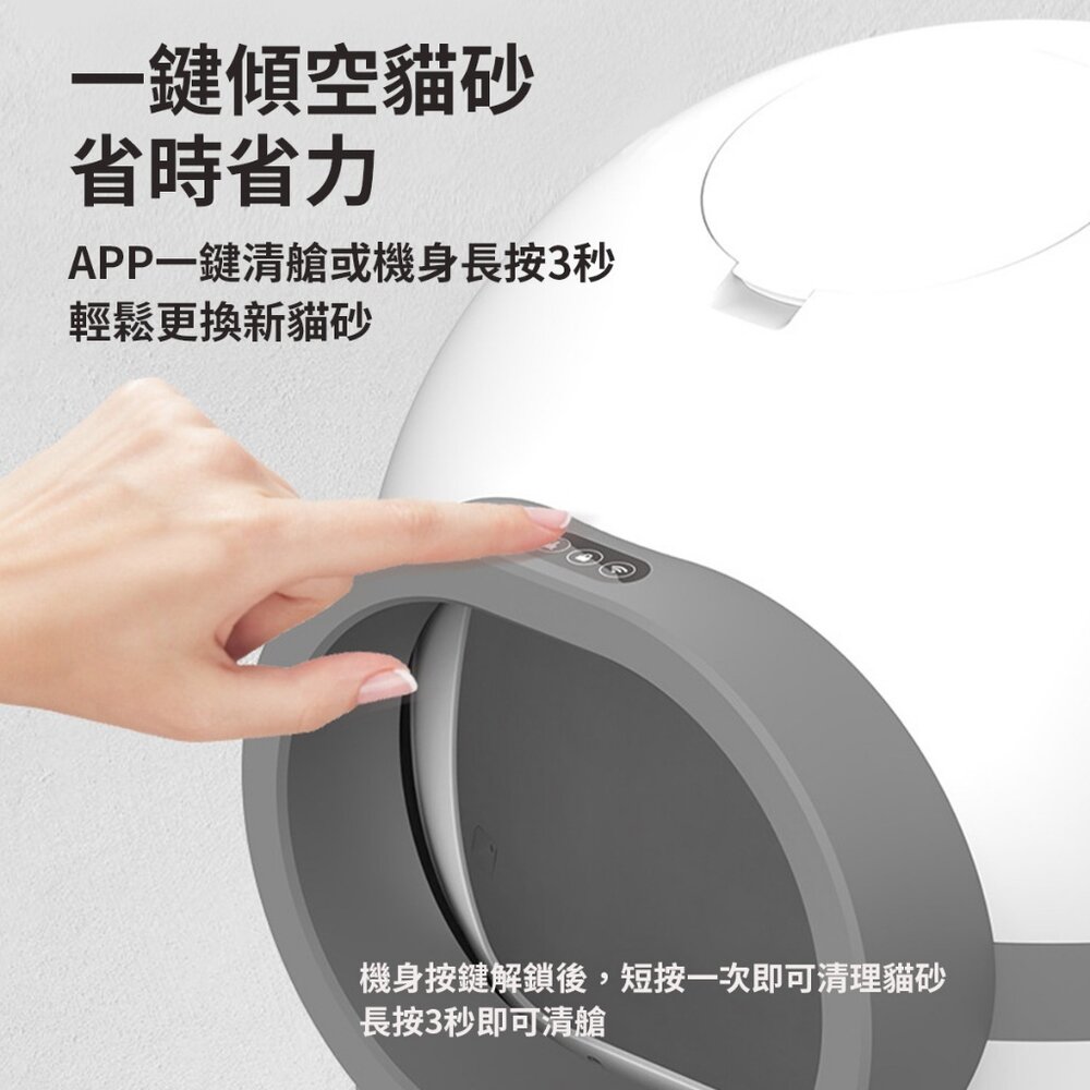 透過"智能生活APP"遙控,遠程操控,貓咪如廁後自動清理
