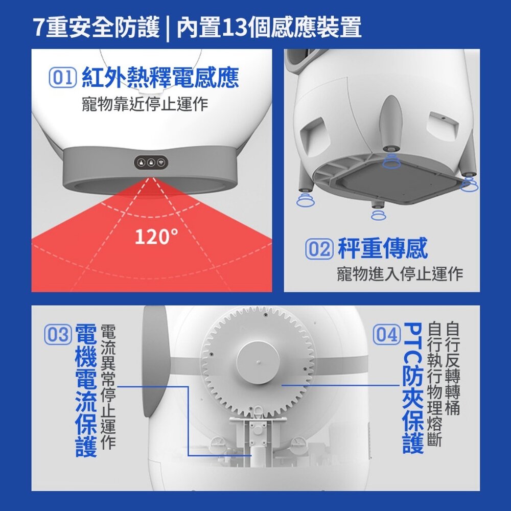 內置13個精密傳感,7重安全防護,貓咪安全有保障
