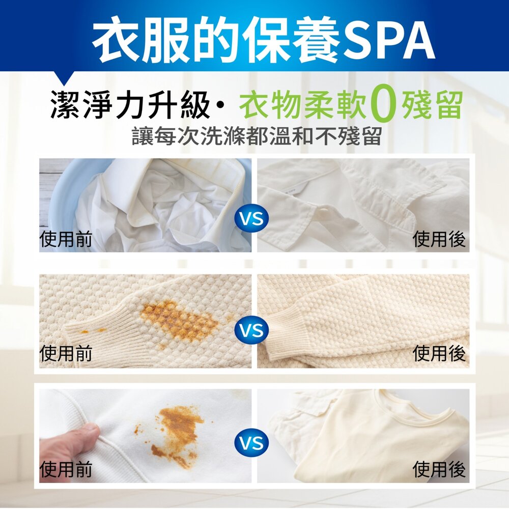 *洗衣前確認洗滌標示,不適用於不能水洗的衣物,不確定衣物是否會褪色時,先用衣角測試後再使用。
