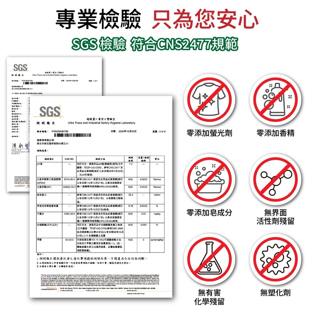 通過SGS檢驗:無螢光劑、無甲醛、無磷、無石化介面活性劑