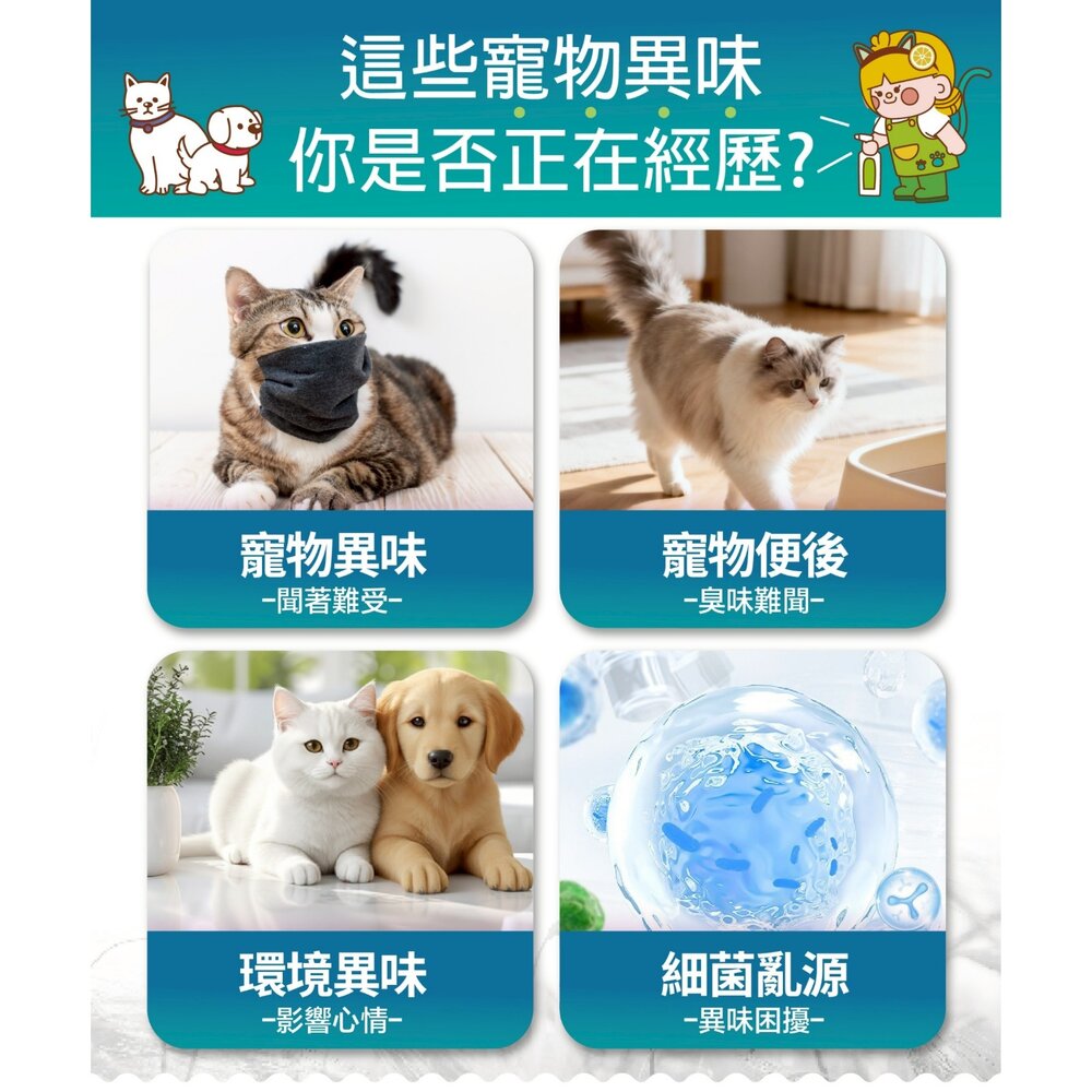 快速除臭|無味不刺鼻|毛孩居家適用|貓狗可用|SGS檢測