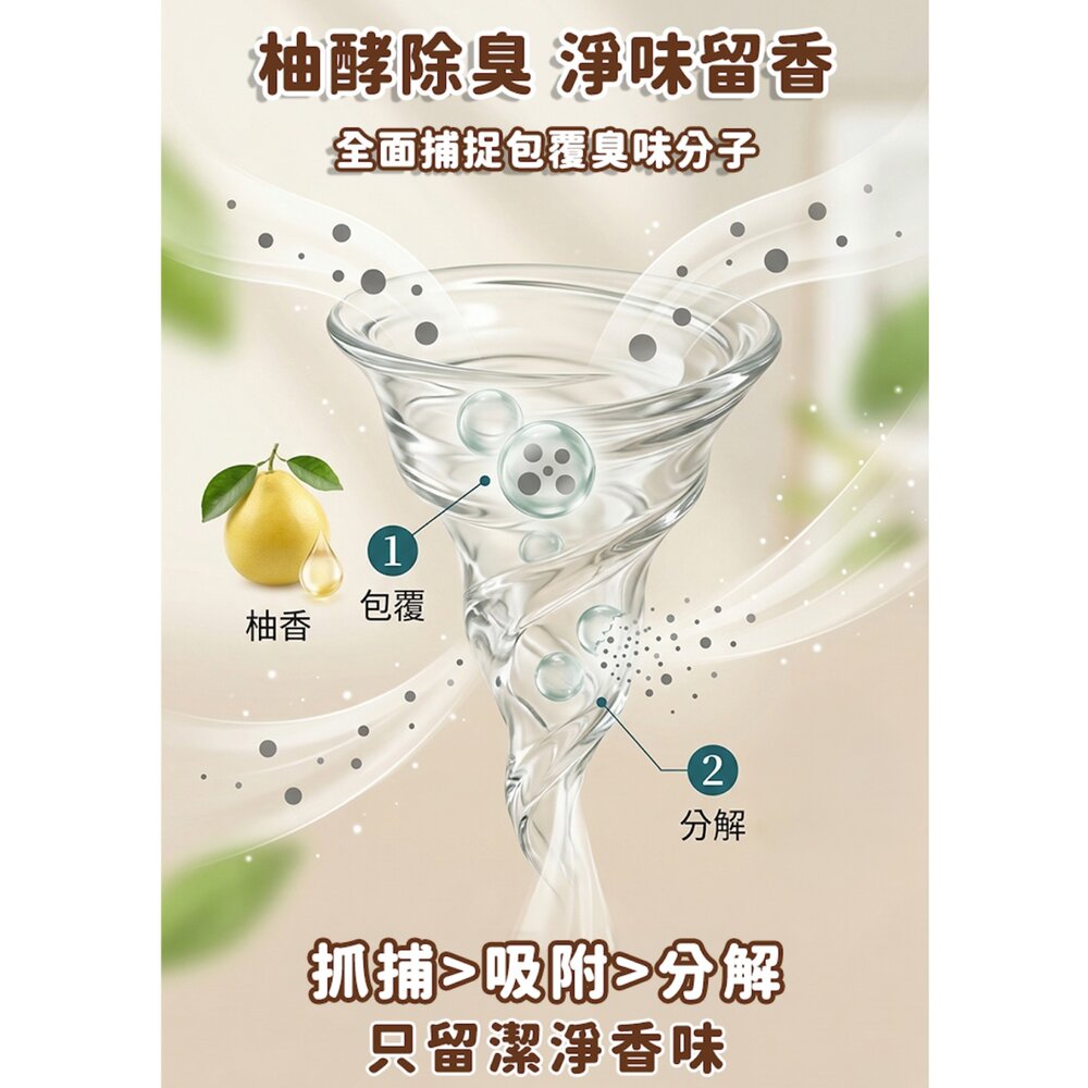 相比化學溶劑,文旦酵素不僅溫和不傷手,還能散發天然清香,且具備自然生物分解性,對環境非常友善。