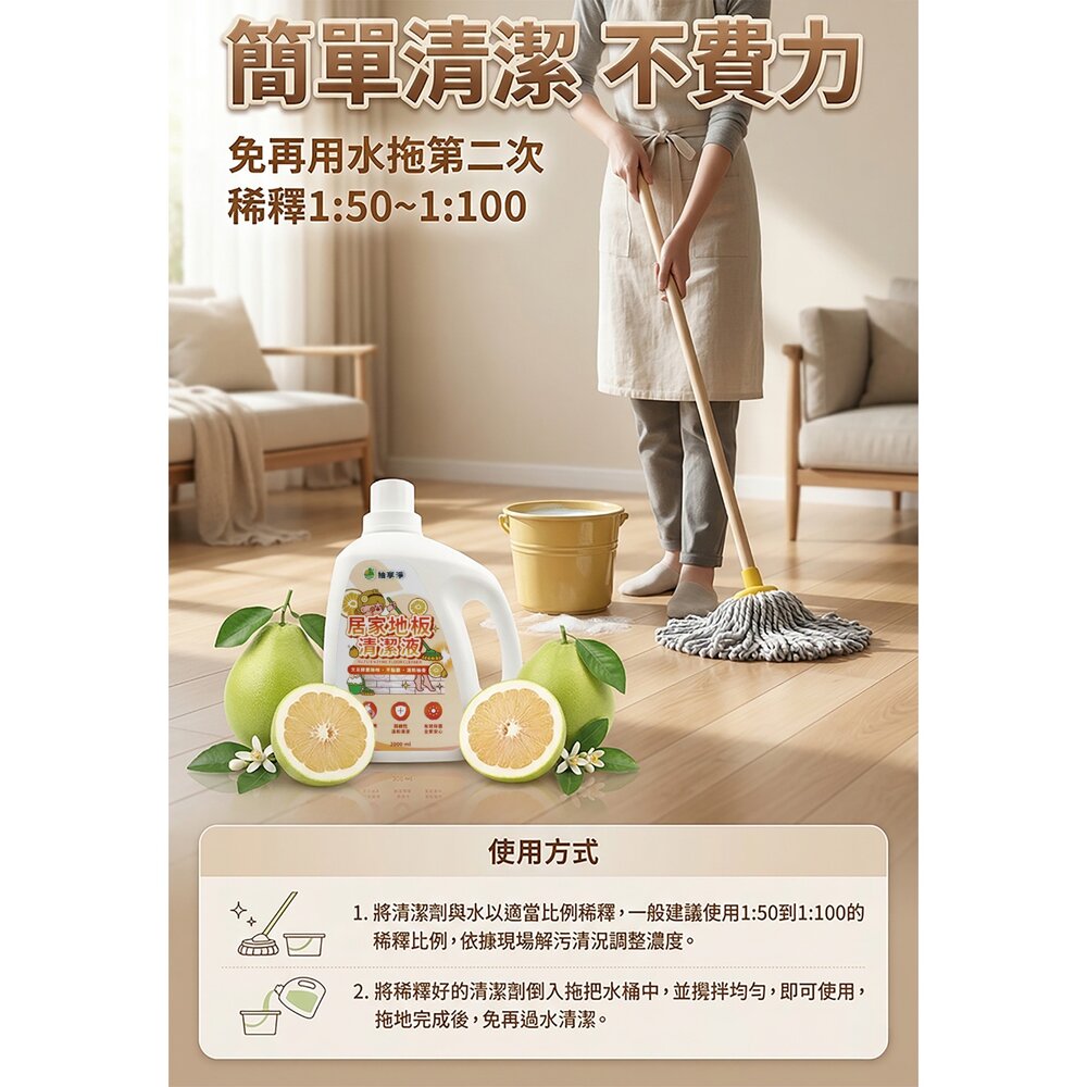 產品名稱:柚享淨 文旦酵素柚淨plus居家地板清潔液 2000ml