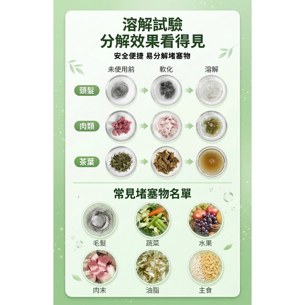 溫和不傷水管|分解堵塞髒污|居家管道適用