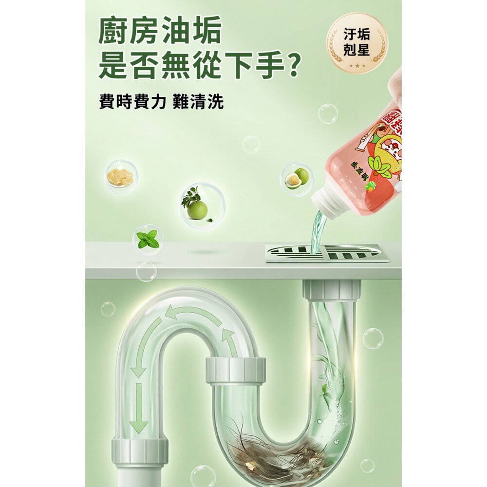 3.廚房汙水管卡陳年油垢,可倒入2瓶凝膠,建議等待3-8小時,即可沖水使用。
