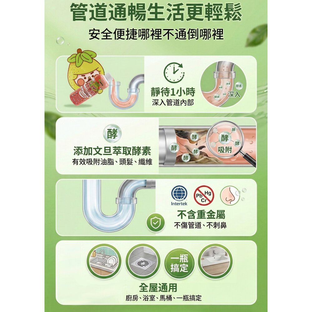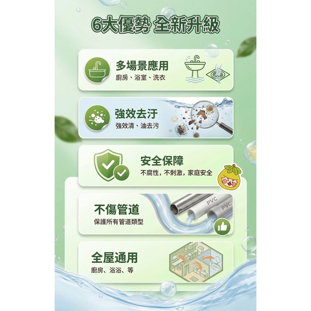 溫和不傷水管|分解堵塞髒污|居家管道適用