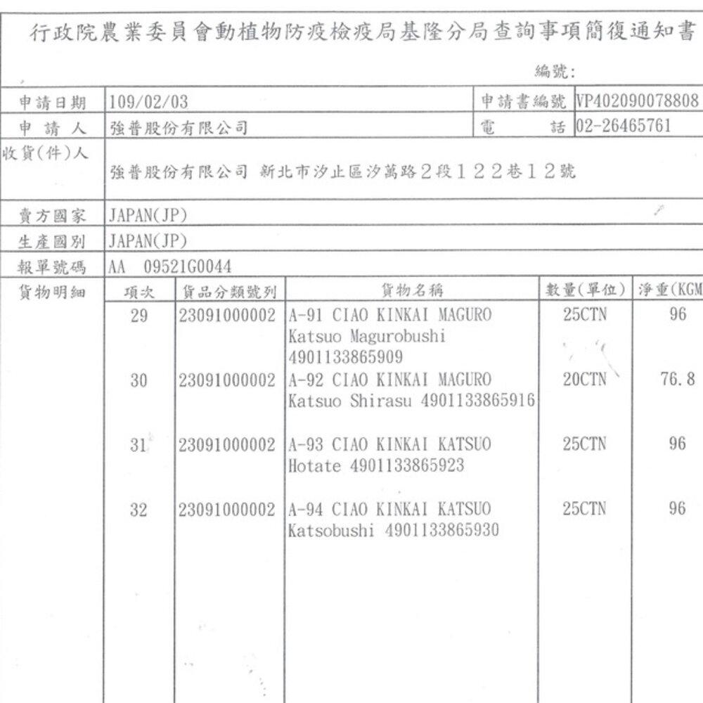 (二) 境外商品不得隨貨贈送應施檢疫物。