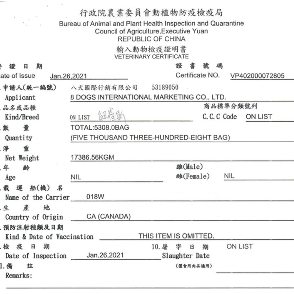 (一) 為防治動物傳染病,境外動物或動物產品等應施檢疫物輸入我國,應符合動物檢疫規定,