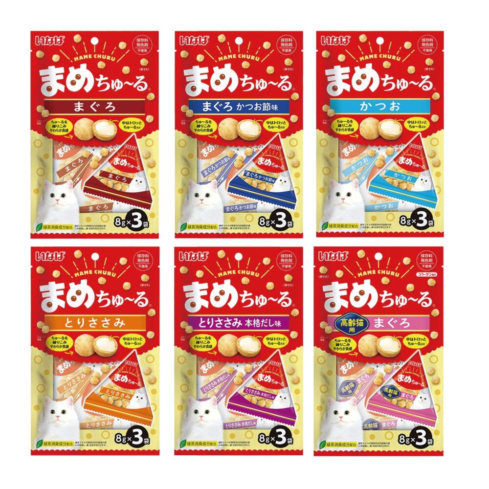 雞肉(雞胸肉)、鮪魚、木薯粉、雞脂、柴魚片、鮪魚萃取物、酵母萃取物、糖類(寡醣等)、膠原蛋白胜肽、寒天、植物性油脂、增稠安定劑(加工澱粉、增稠多醣類)、礦物質類(鈉、磷、氯)、調味料(胺基酸)、維生素E、類胡蘿蔔素、綠茶萃取物