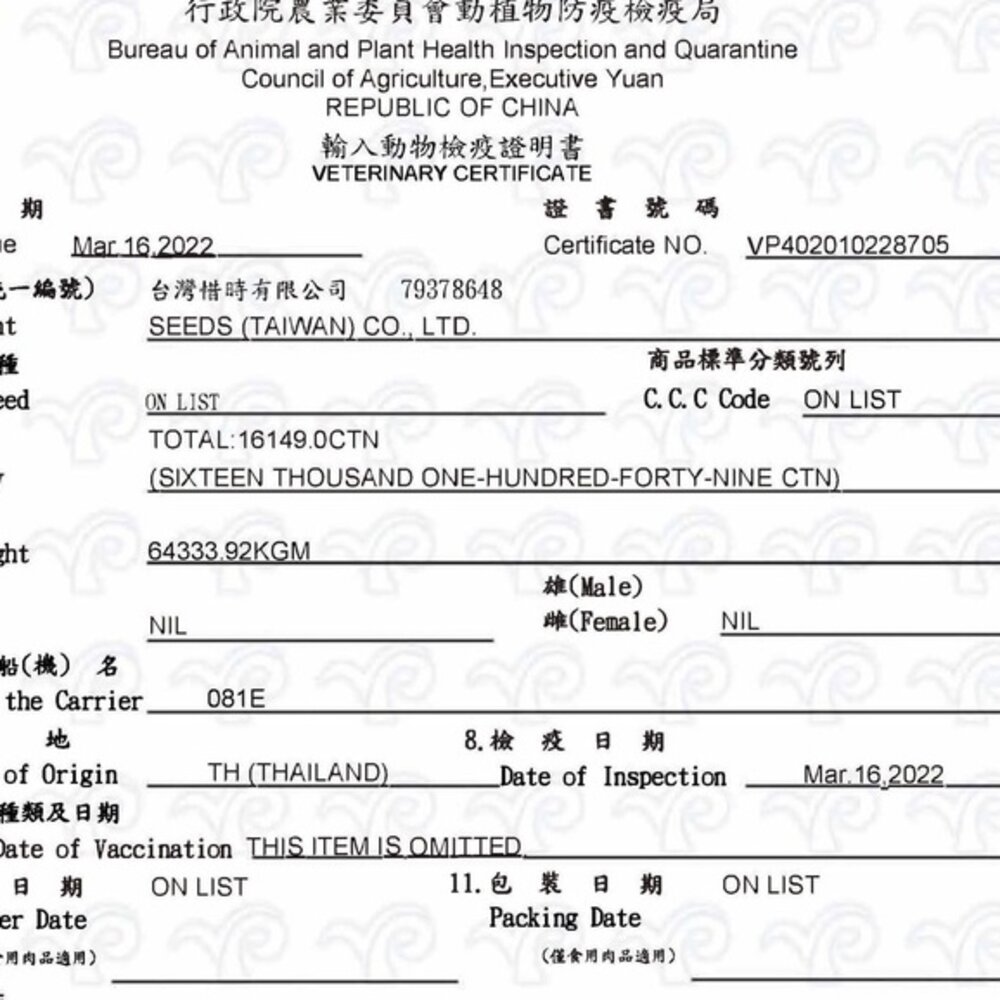 (一) 為防治動物傳染病,境外動物或動物產品等應施檢疫物輸入我國,應符合動物檢疫規定,