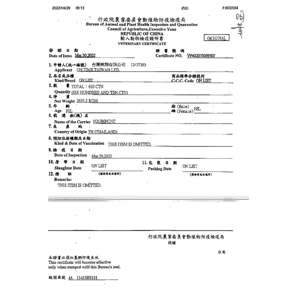 (一) 為防治動物傳染病,境外動物或動物產品等應施檢疫物輸入我國,應符合動物檢疫規定,