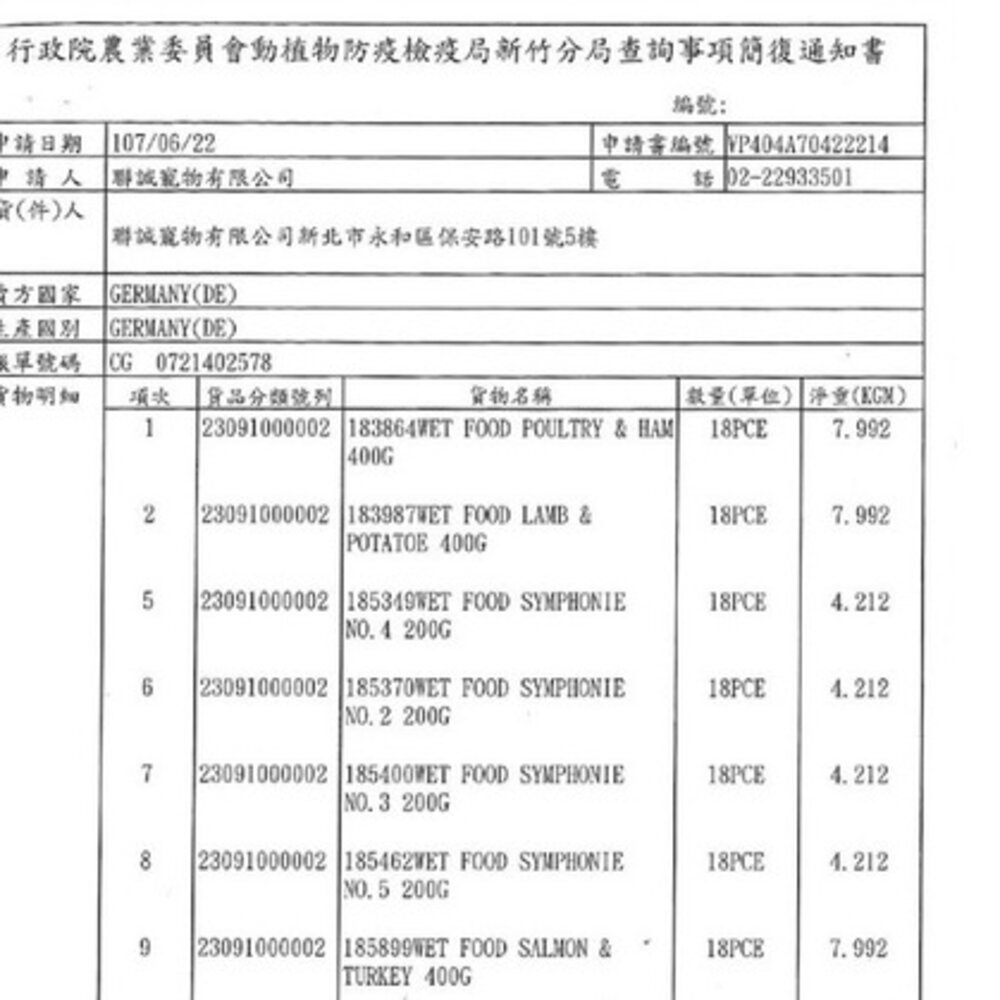 (一) 為防治動物傳染病,境外動物或動物產品等應施檢疫物輸入我國,應符合動物檢疫規定,