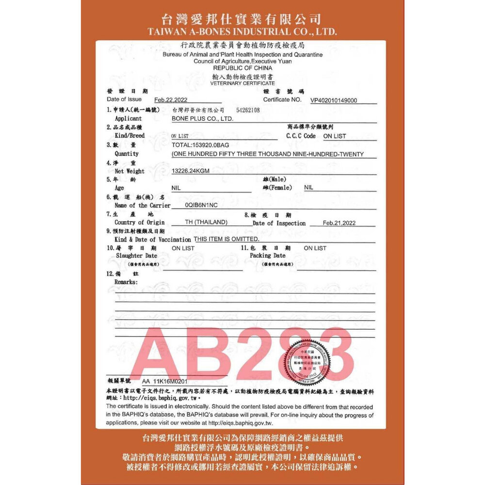 (二) 境外商品不得隨貨贈送應施檢疫物。