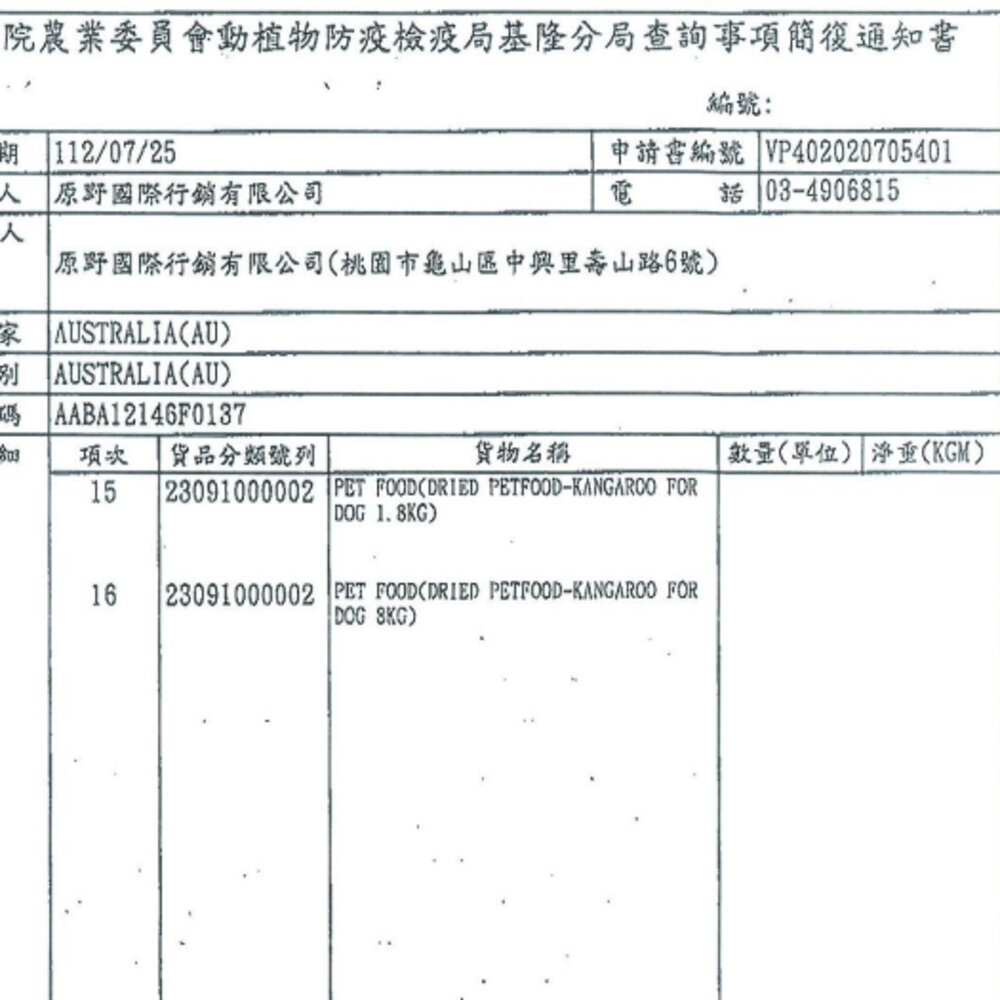 -成分 : 袋鼠肉、原型袋鼠肉凍乾、蠶豆、鷹嘴豆、豌豆蛋白、