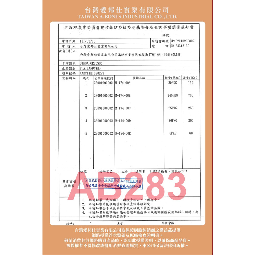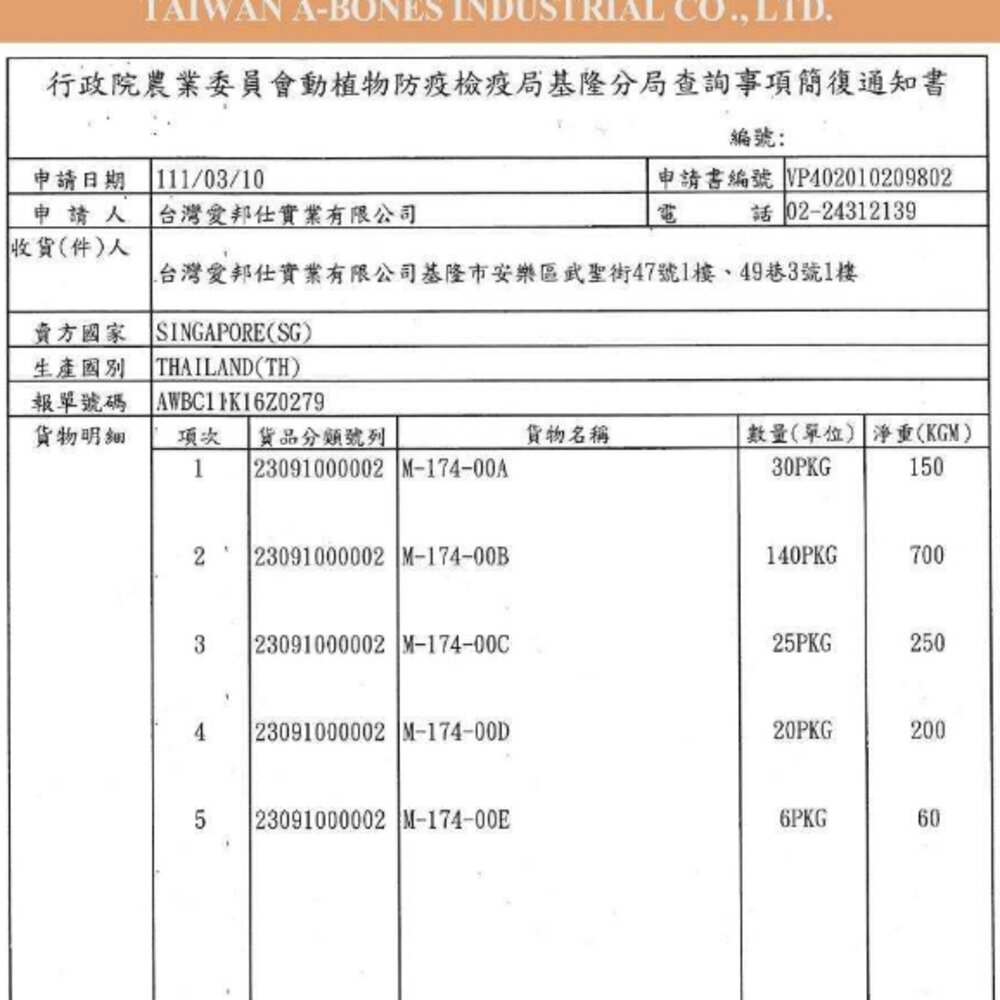 營養成分及含量:粗蛋白 32%以上, 粗脂肪 9%以上, 粗纖維 8%以下, 粗灰分 9%以下, 水分 18%以下