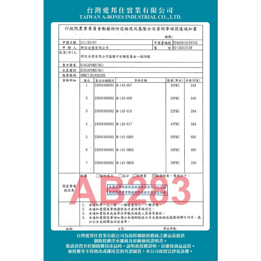 (二) 境外商品不得隨貨贈送應施檢疫物。