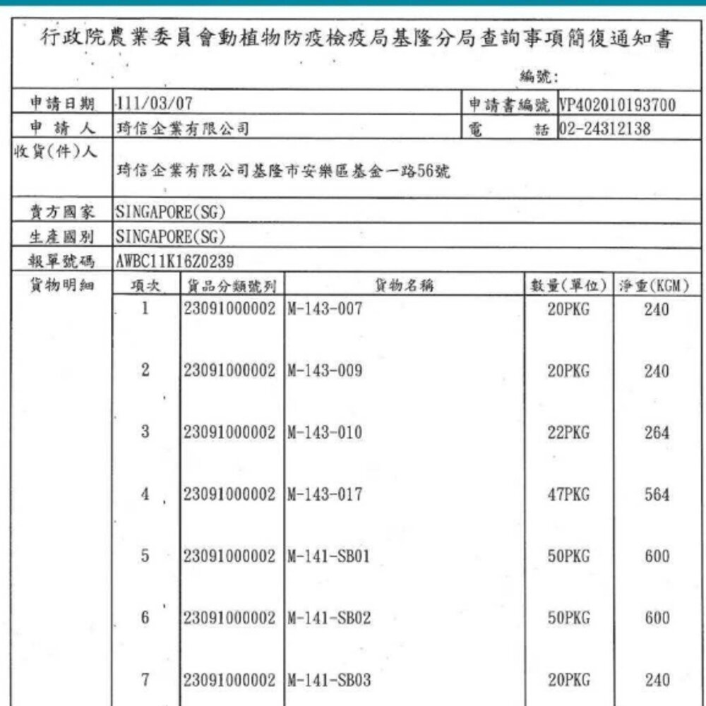 (一) 為防治動物傳染病,境外動物或動物產品等應施檢疫物輸入我國,應符合動物檢疫規定,