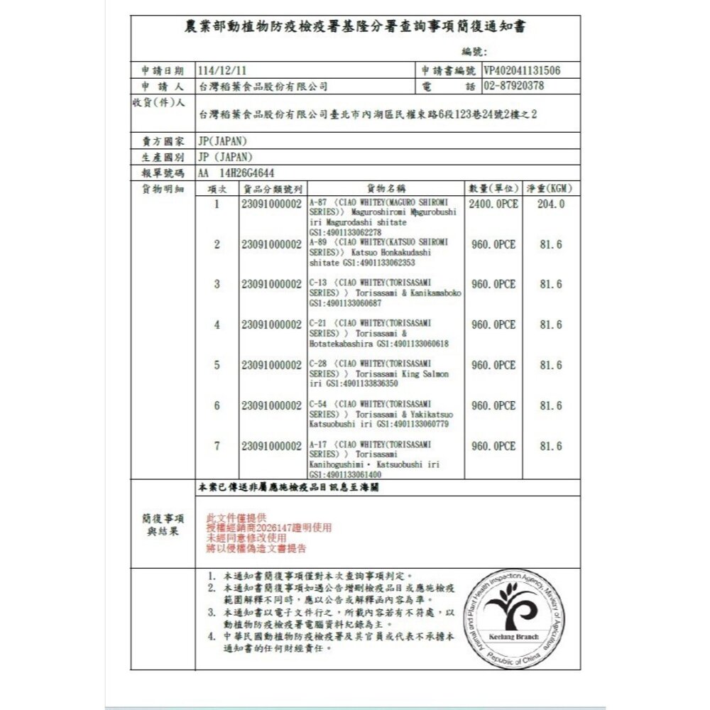 (二) 境外商品不得隨貨贈送應施檢疫物。