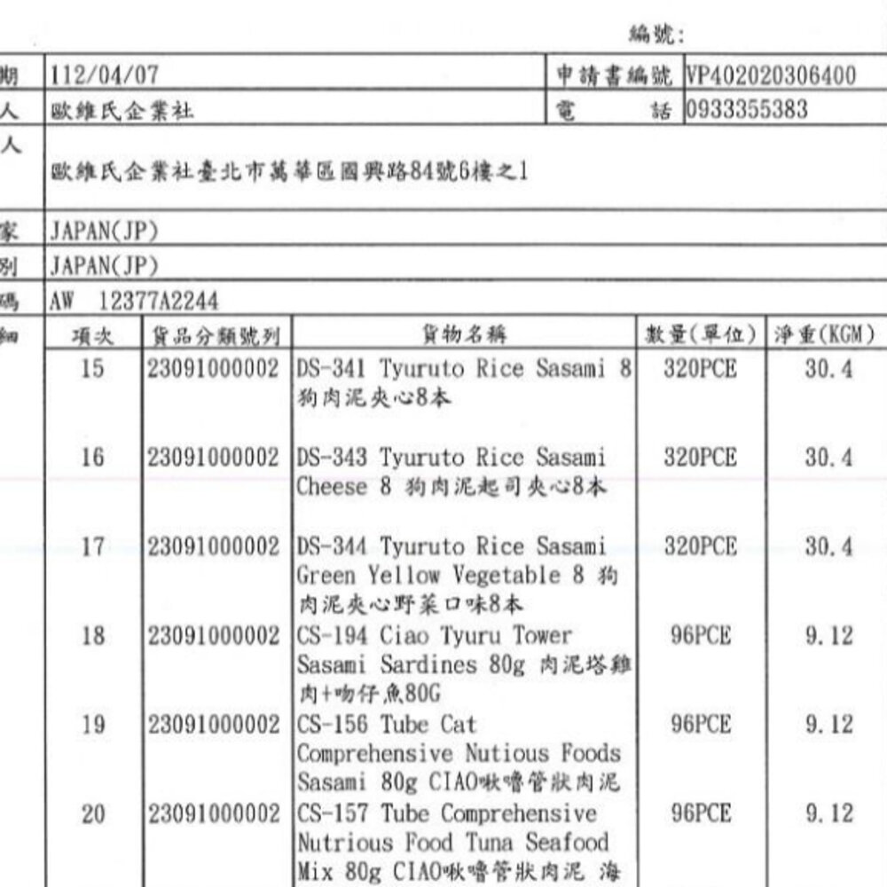 (二) 境外商品不得隨貨贈送應施檢疫物。