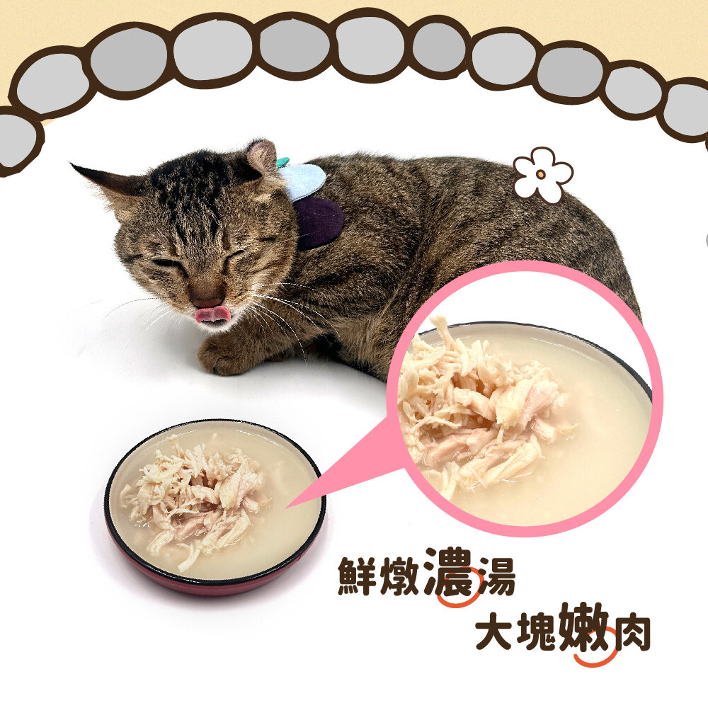 成分:雞胸肉、雞肉湯(水、木薯粉、離胺酸、牛磺酸)