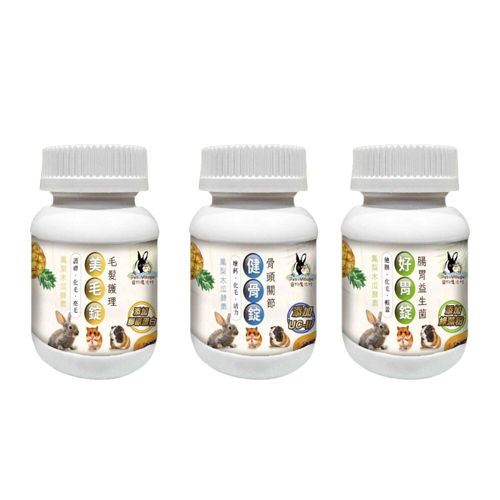成份:綠藻粉、洋車前子殼粉、小動物專用七株益生菌(乾酪乳桿菌、