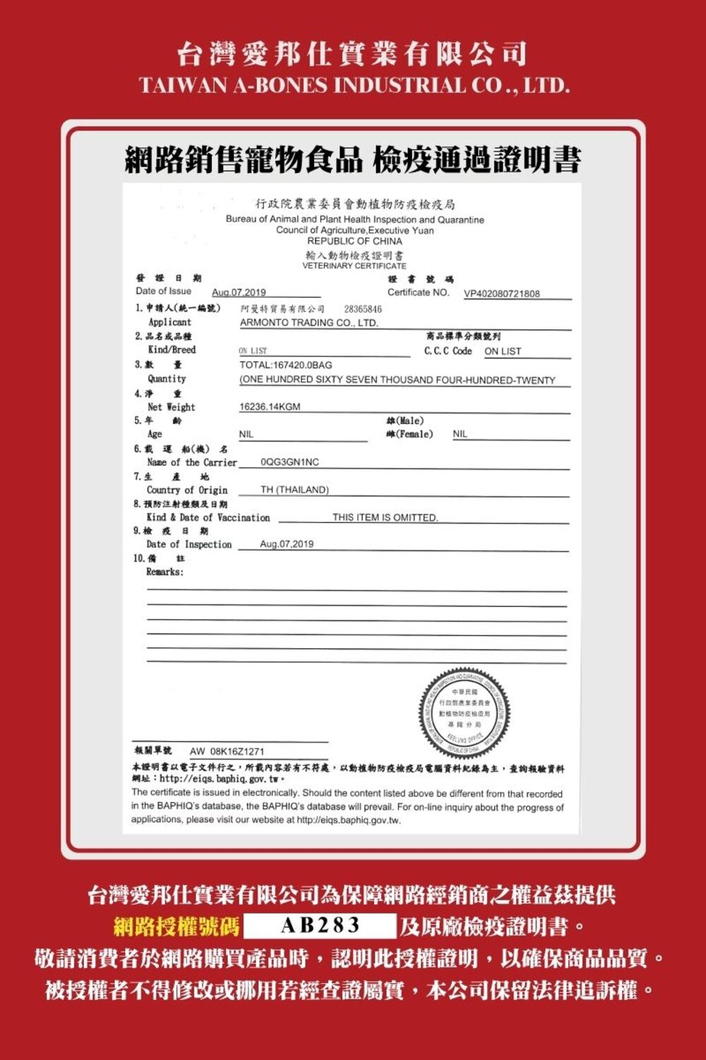 (二) 境外商品不得隨貨贈送應施檢疫物。