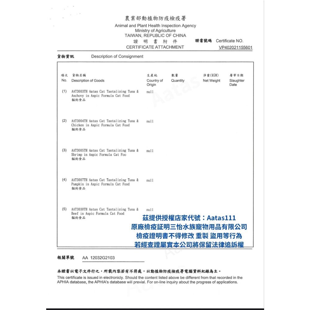 (二) 境外商品不得隨貨贈送應施檢疫物。