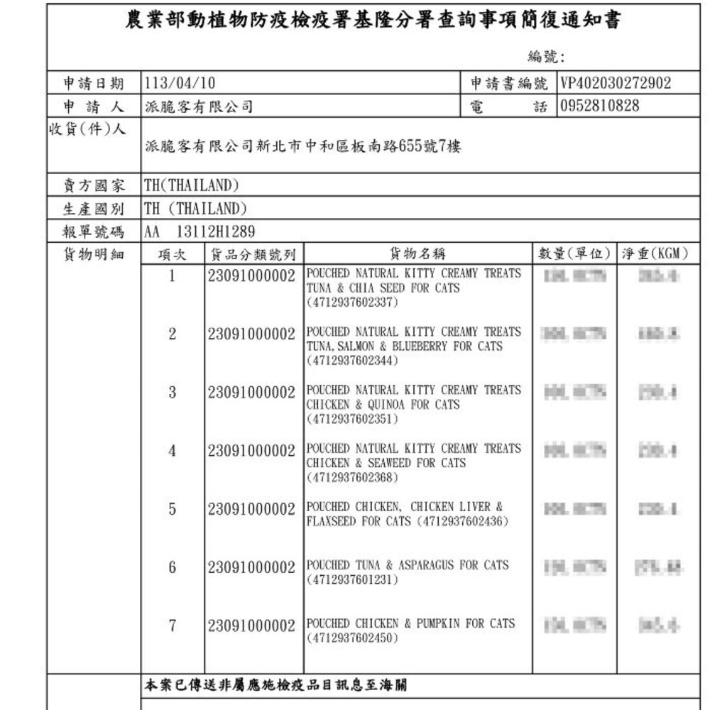 (二) 境外商品不得隨貨贈送應施檢疫物。