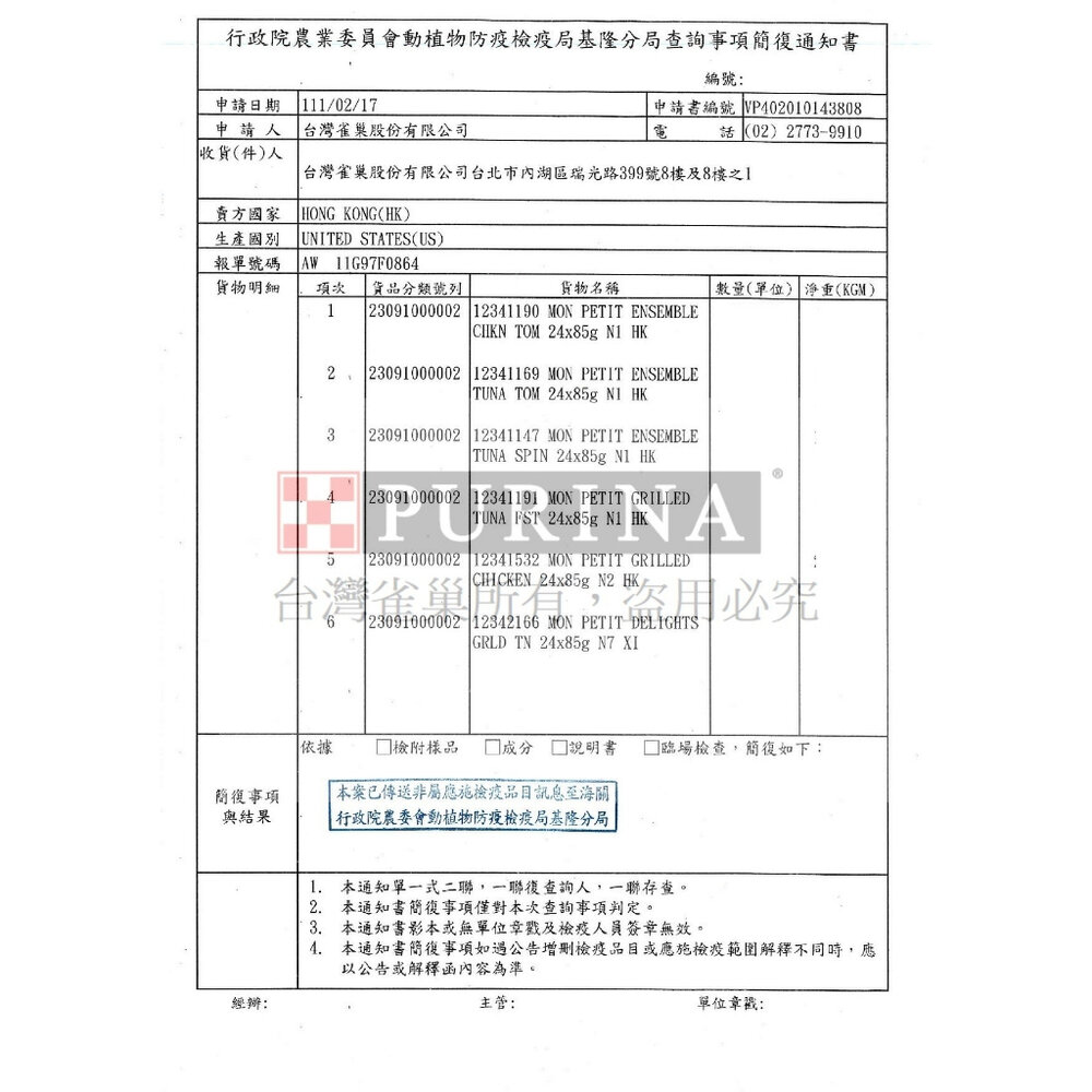 (二) 境外商品不得隨貨贈送應施檢疫物。