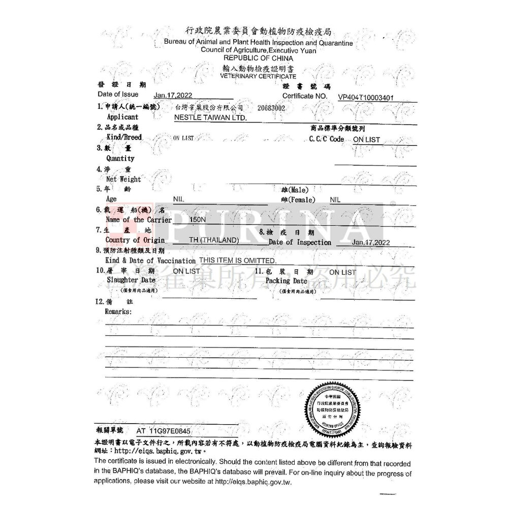 (一) 為防治動物傳染病,境外動物或動物產品等應施檢疫物輸入我國,應符合動物檢疫規定,