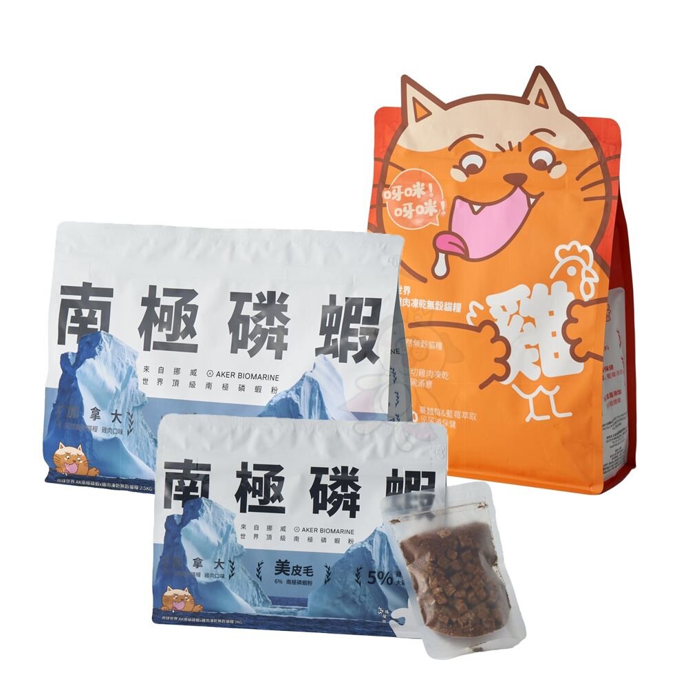 ➤其他成分:AKER BIOMARINE南極磷蝦粉6%、新鮮純雞肉凍乾5%