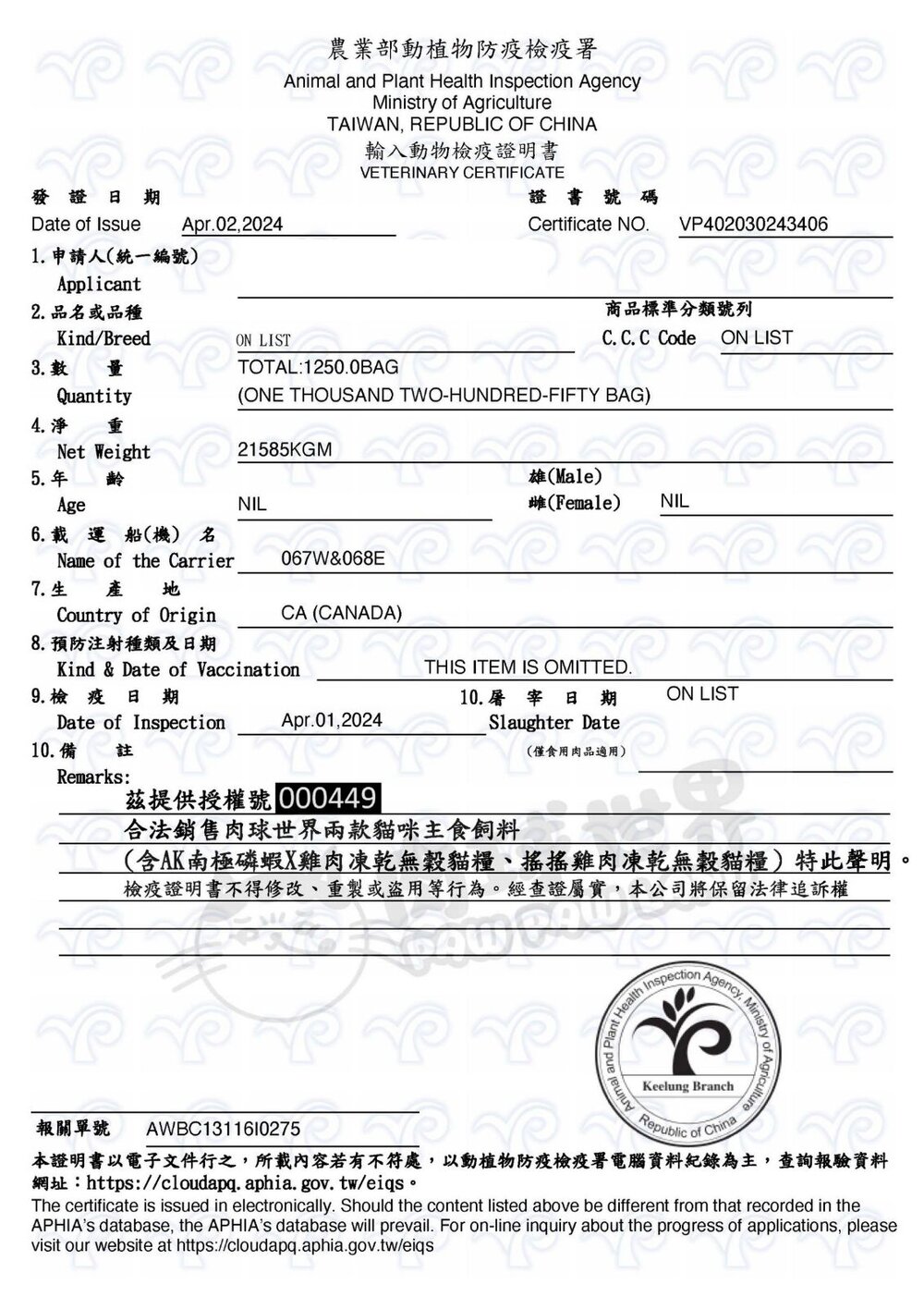 (一) 為防治動物傳染病,境外動物或動物產品等應施檢疫物輸入我國,應符合動物檢疫規定,