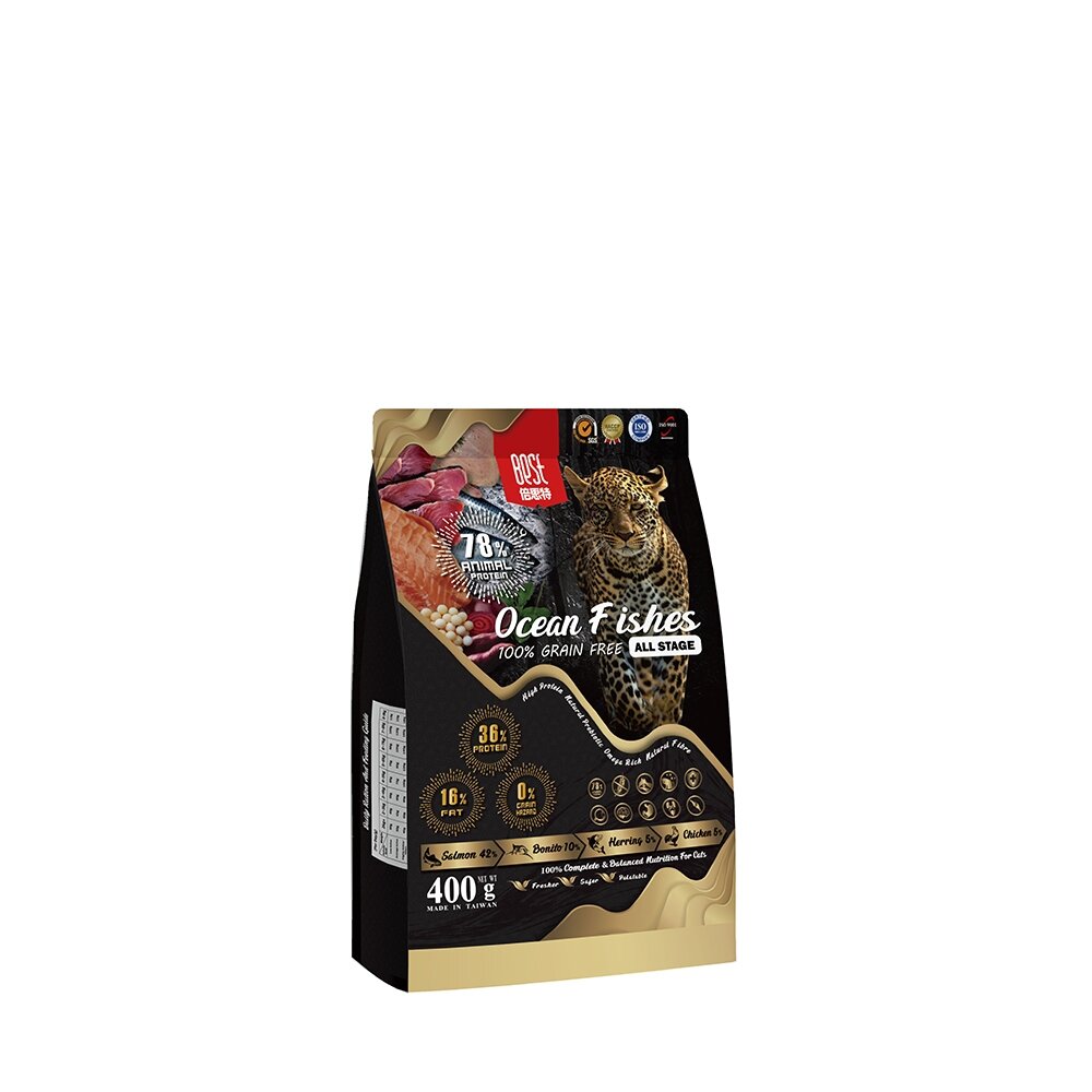 脫水鮭魚42%、脫水鰹魚10%、脫水鯡魚5%、脫水雞肉5%、雞脂(以維生素E保鮮)、新鮮地瓜、鮭魚油(Omega 3、DHA、EPA來源)、新鮮甜菜、新鮮苜蓿草、亞麻籽(Omega 3來源)、新鮮車前草、卵磷脂、酵母粉、絲蘭萃取物、牛磺酸、綠藻、蛋胺酸、離胺酸、氯化膽鹼、新鮮鱉蛋粉、蝦紅素、β-胡蘿蔔素、靈芝多醣、綜合維生素(維生素A、維生素B3、維生素B12、維生素D3、維生素B2、葉酸、維生素B6、維生素B1、生物素H、維生素C、維生素E)、綜合礦物質(胺基酸螯合銅、胺基酸螯合鐵、胺基酸螯合錳、胺基酸螯合鋅)、泛酸、氯化鈉、葡萄糖胺、植酸酶、益生菌(乳酸小球菌、酵母菌)。