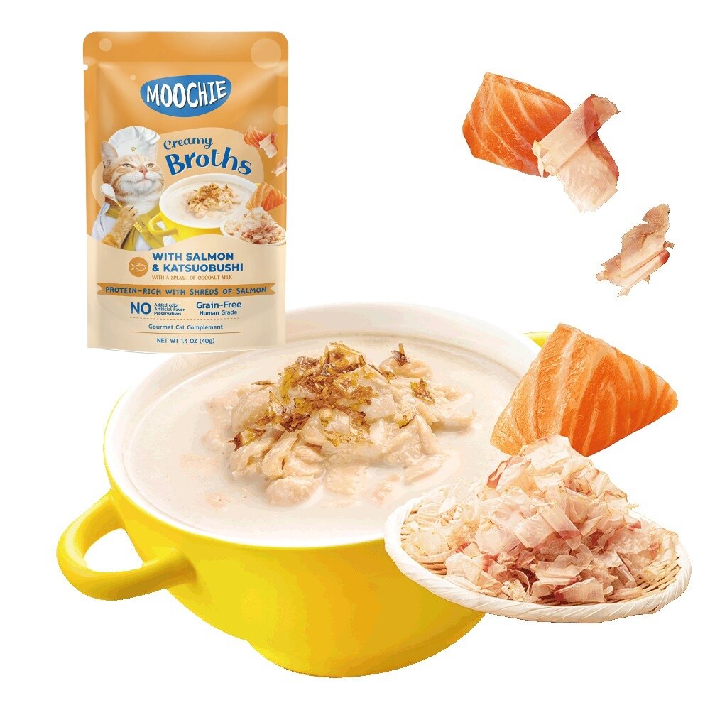 鮭魚+柴魚:鮪魚湯、鮭魚、柴魚、椰奶、木薯澱粉、甘胺酸、牛磺酸、磷酸三鈣、纖維素膠、瓜爾豆膠、黃原膠、維生素E。