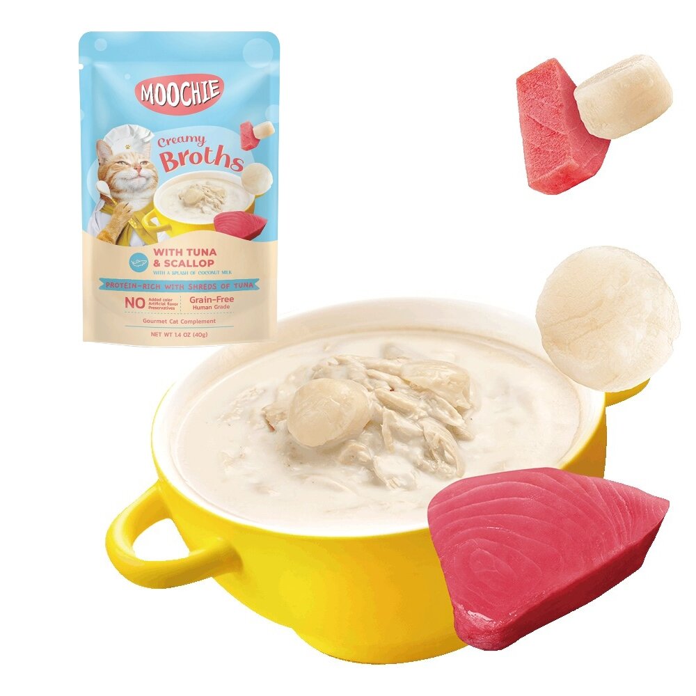 鮪魚+扇貝:鮪魚湯、鮪魚、扇貝、椰奶、木薯澱粉、甘胺酸、牛磺酸、磷酸三鈣、纖維素膠、瓜爾豆膠、黃原膠、維生素E。