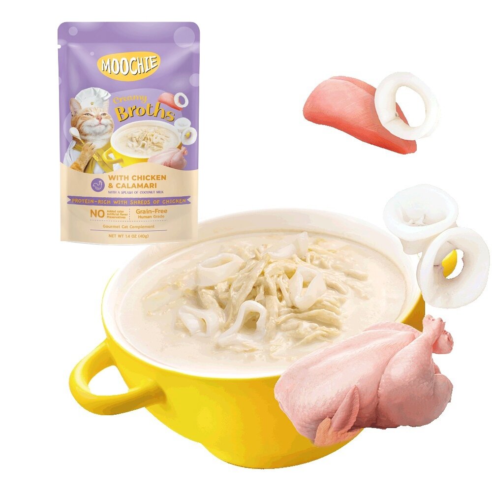 雞肉+魷魚:雞湯、雞胸肉、魷魚、椰奶、木薯澱粉、甘胺酸、牛磺酸、磷酸三鈣、纖維素膠、瓜爾豆膠、黃原膠、維生素E。
