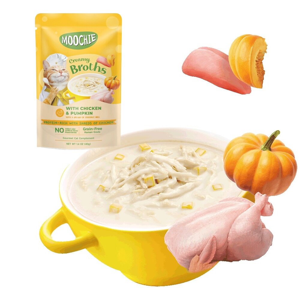 雞肉+南瓜:雞湯、雞胸肉、南瓜、椰奶、木薯澱粉、甘胺酸、牛磺酸、磷酸三鈣、纖維素膠、瓜爾豆膠、黃原膠、維生素E。