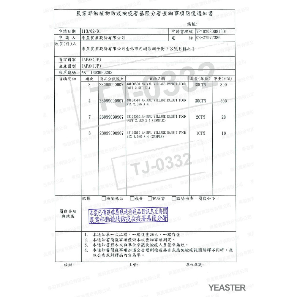 營養分析質:蛋白質22.5%↑,脂質8.0%↑,粗纖維5.5%↓,灰份9.0%↓,水份10%↓,鈣1.0%↑,磷0.8%↑,鈉0.2%↑,亞麻油酸1.5%↑,維生素A 10,000IU/kg↑,維生素E 100IU/kg↑,維生素B1 3.5mg/kg↑,維生素B2 6.0mg/kg↑,代謝能325kcal/↑100g