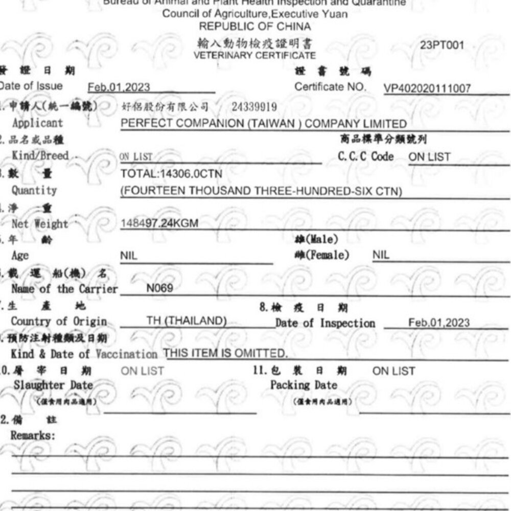 (二) 境外商品不得隨貨贈送應施檢疫物。