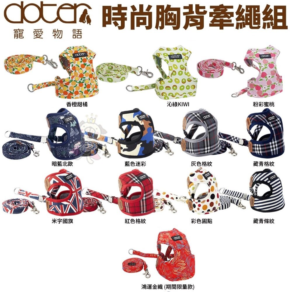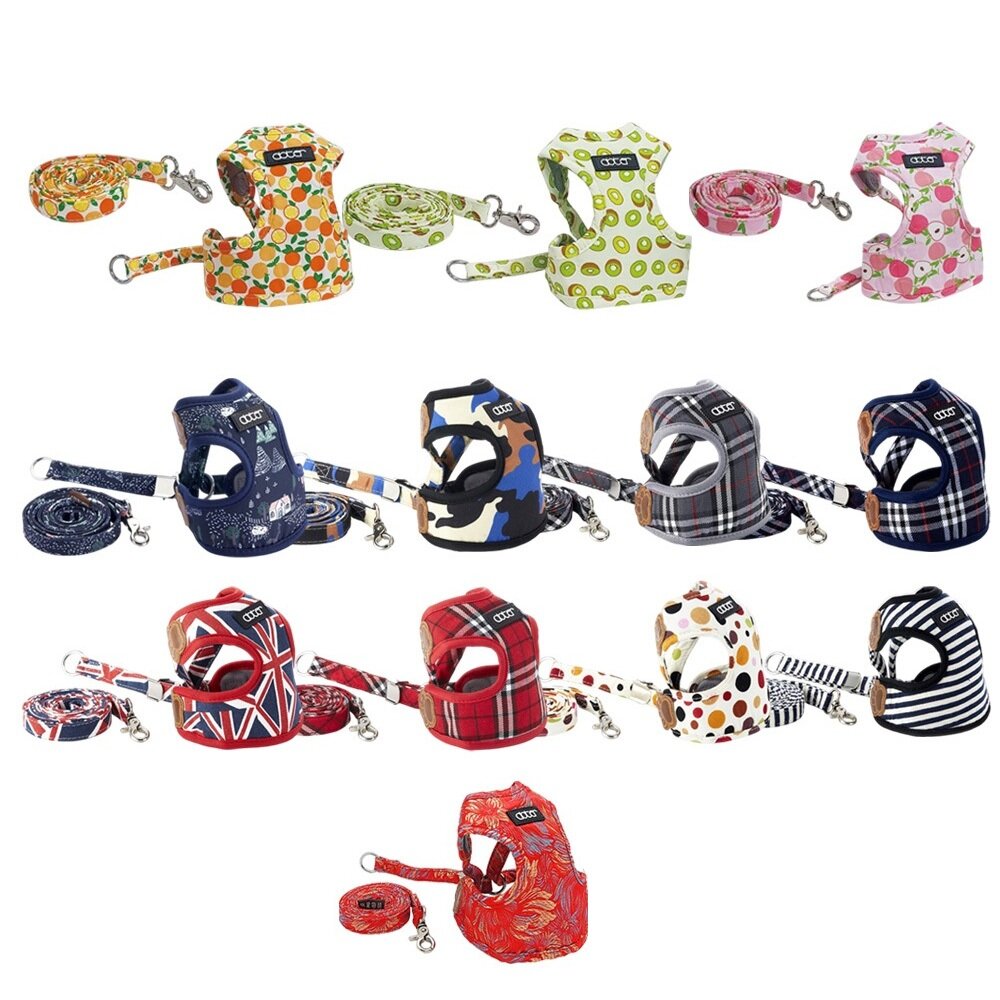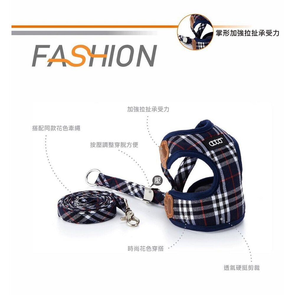 按壓調整穿脫方便、搭配同款花色牽繩。