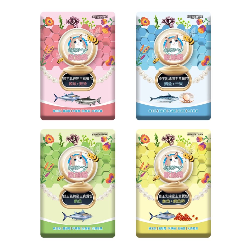 成分:水、鮪魚、鮭魚、魚油、木薯澱粉、增稠穩定劑、寡糖、大麥若葉、蜂王乳、乳酸菌、蔓越莓萃取、