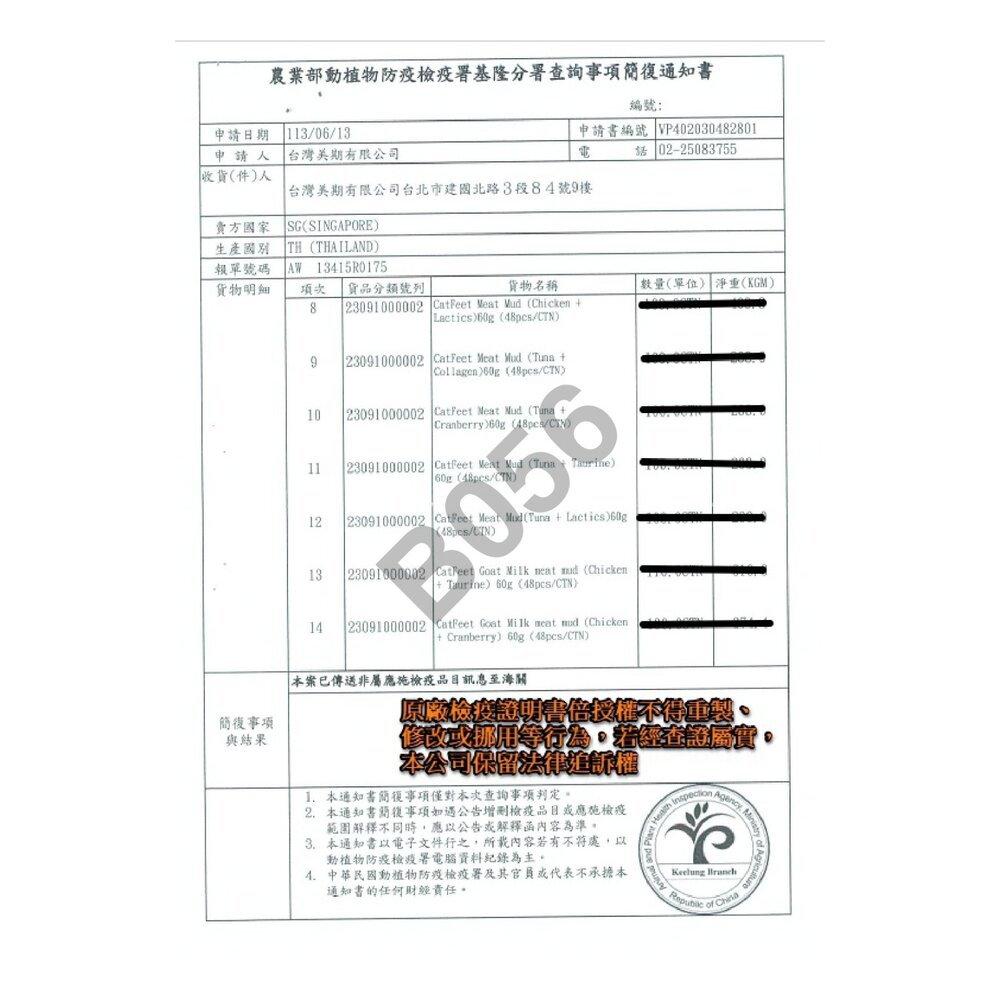 (二) 境外商品不得隨貨贈送應施檢疫物。