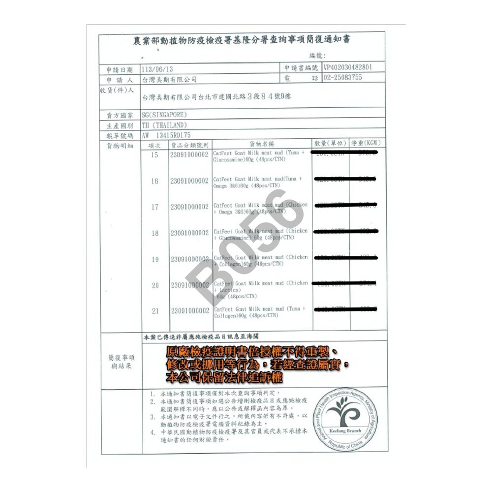 成分:水、去骨新鮮雞肉、改性澱粉、羊奶、調味劑、增稠劑、豆油、纖維素、葡萄糖胺、維生素E、低聚果糖