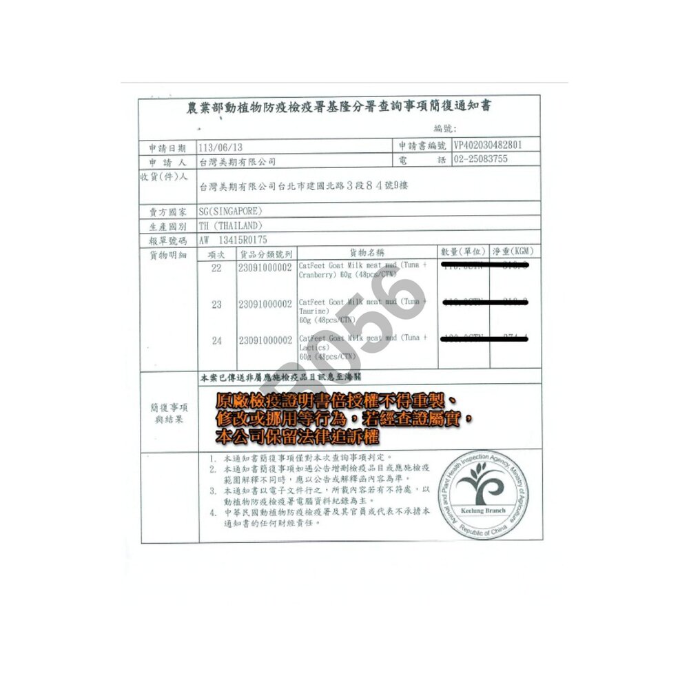 成分:水、新鮮鮪魚、改性澱粉、羊奶、調味劑、增稠劑、豆油、纖維素、葡萄糖胺、維生素E、低聚果糖