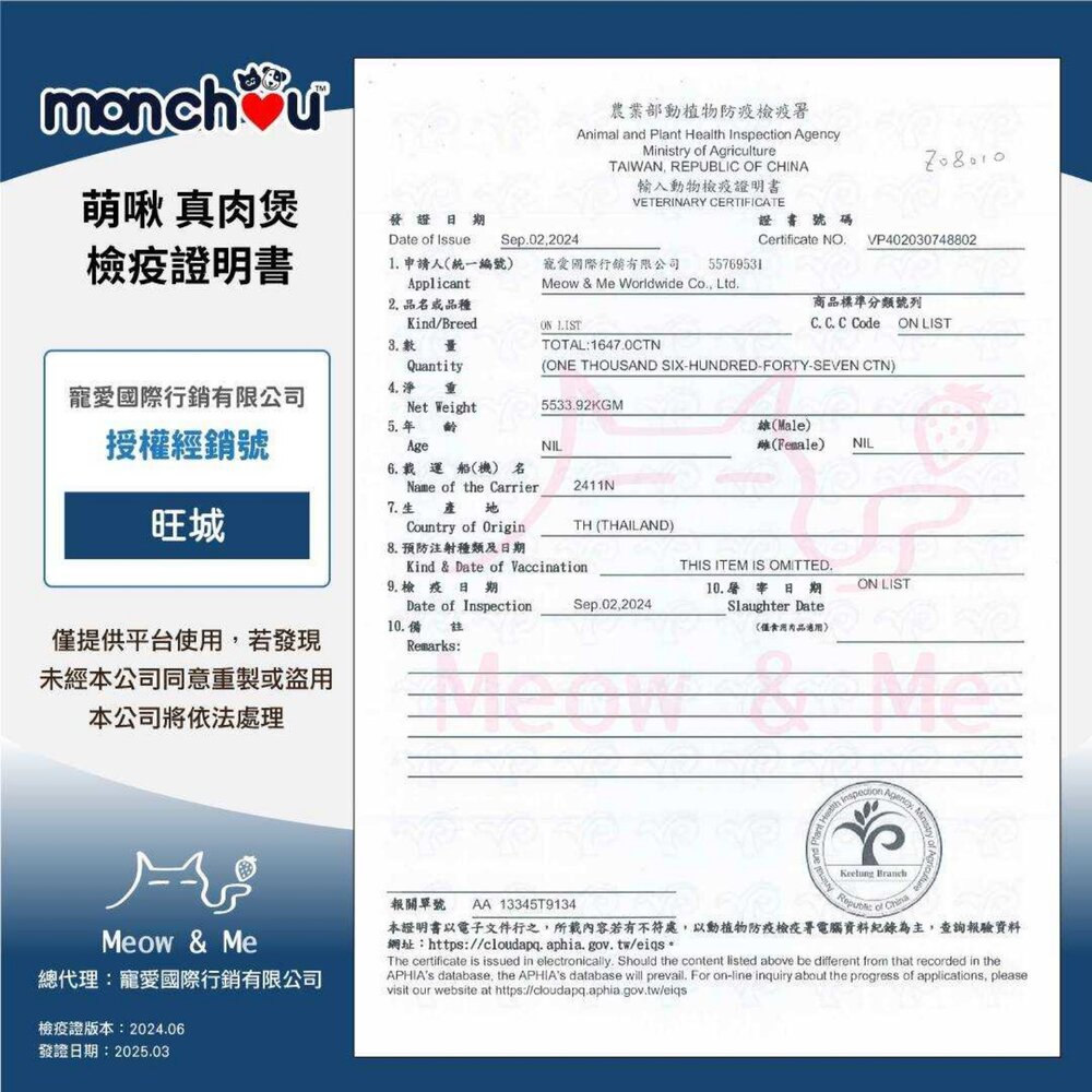 成分:雞肉、羊肉、增稠劑、螯合鋅、鮪魚油、果寡糖、維他命E、磷蝦油