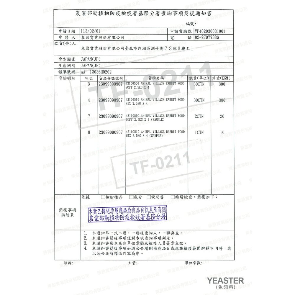 | 幼成兔-蔬菜、苜蓿2.2kg | 現貨 200 件 |