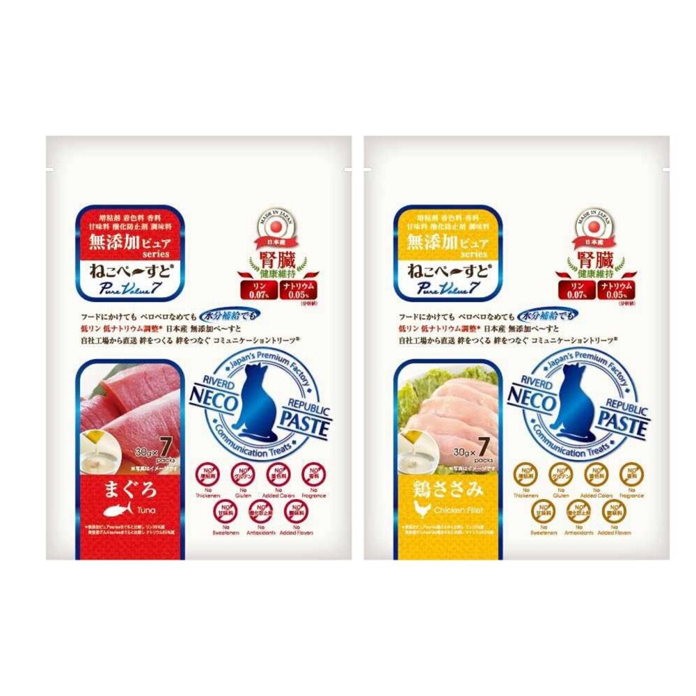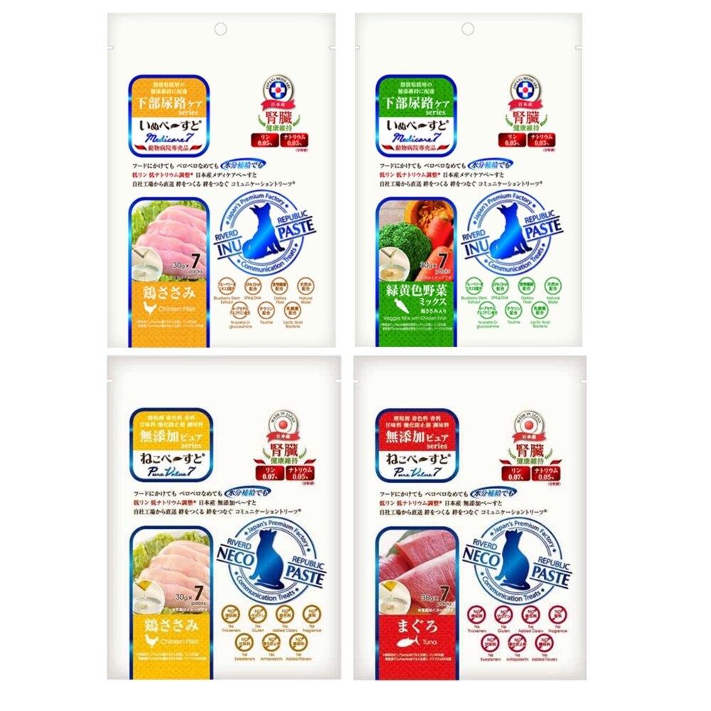 成分: 雞柳肉/鮪魚肉/海鮮(鮪魚、鰹魚、鮭魚、白鮭魚)、米粉、鳥取縣產奧大山天然水、扇貝提取物、麥芽寡糖、海帶湯、寒天、維生素E